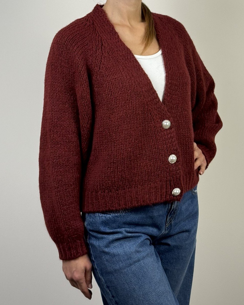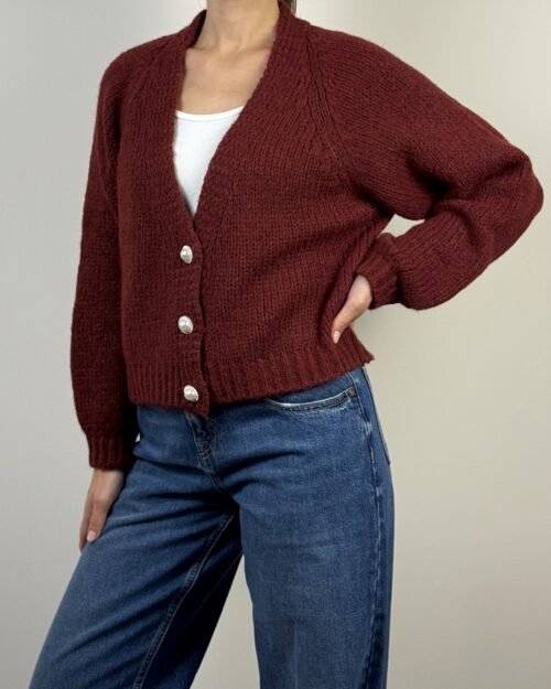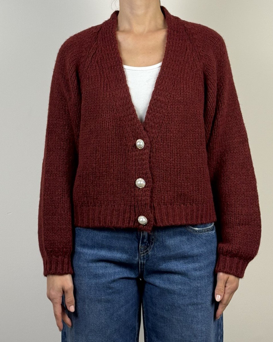 Cardigan 3 bottoni gioiello fit corto regolare.