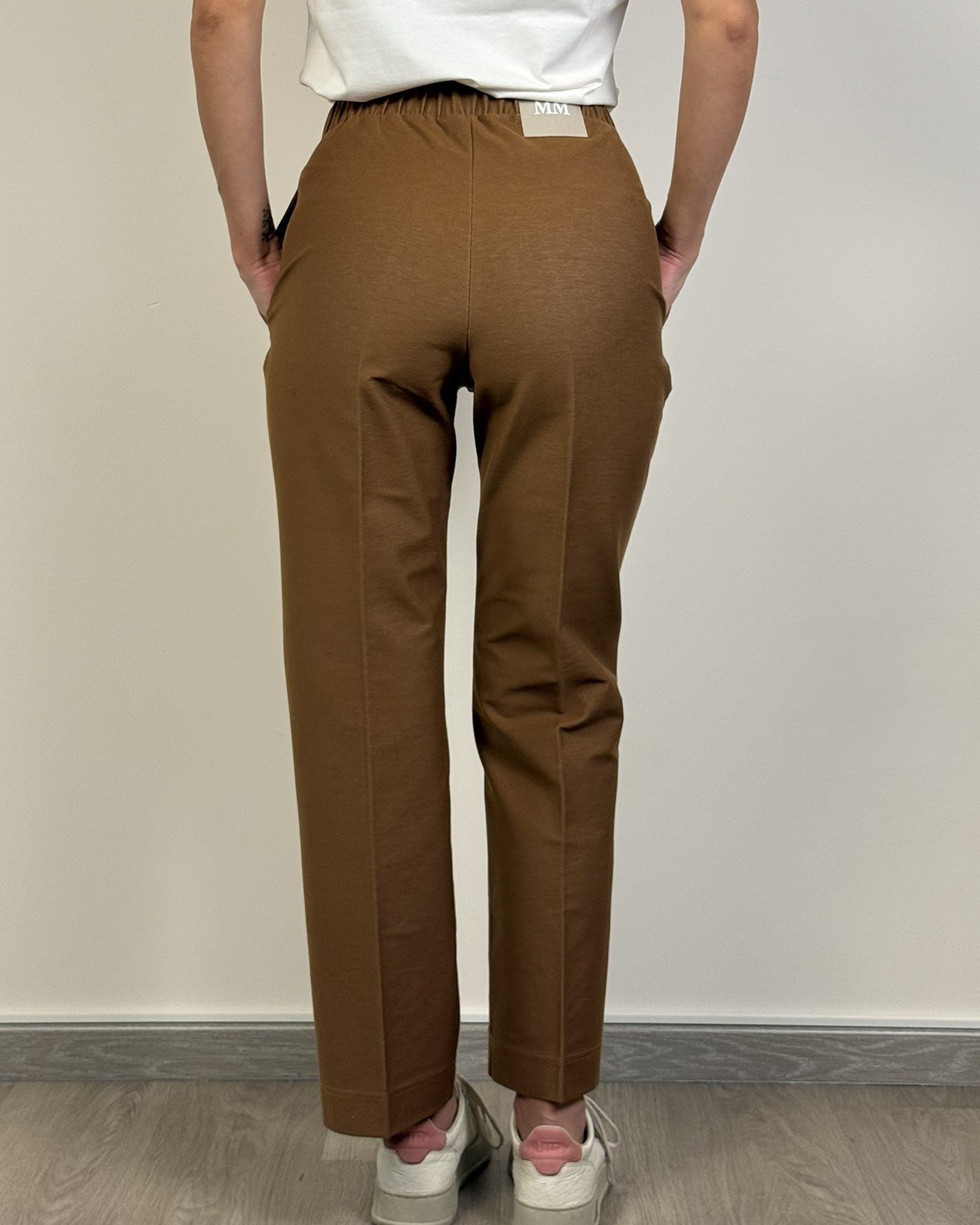 Pantaloni realizzati in jersey con texture effetto denim e rifiniti con impunture a contrasto. Il capo ha cintone elastico, tasche inserite nei fianchi e piega stirata al centro gamba. L’etichetta con logo sul retro personalizza il capo.