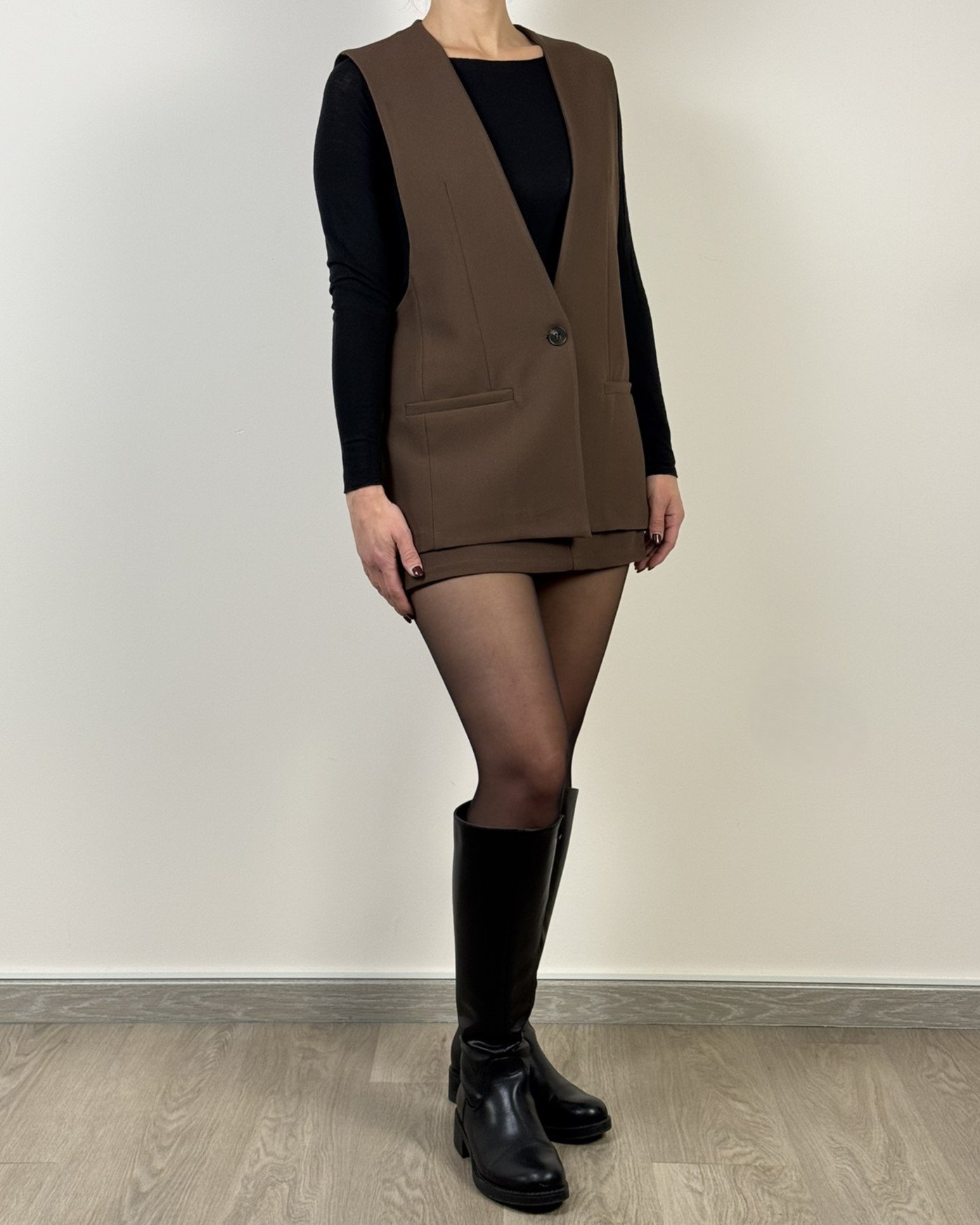 Gilet over a un bottone con spacchi laterali sul retro.