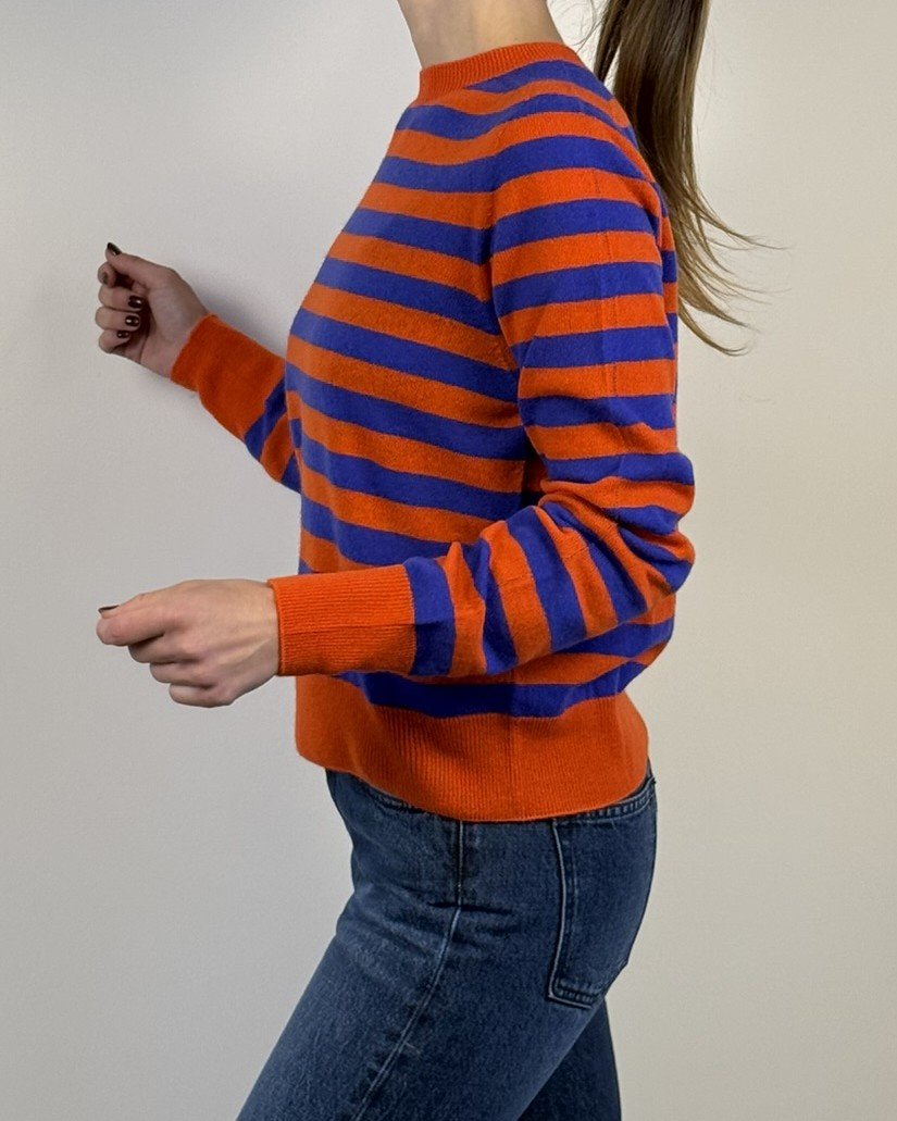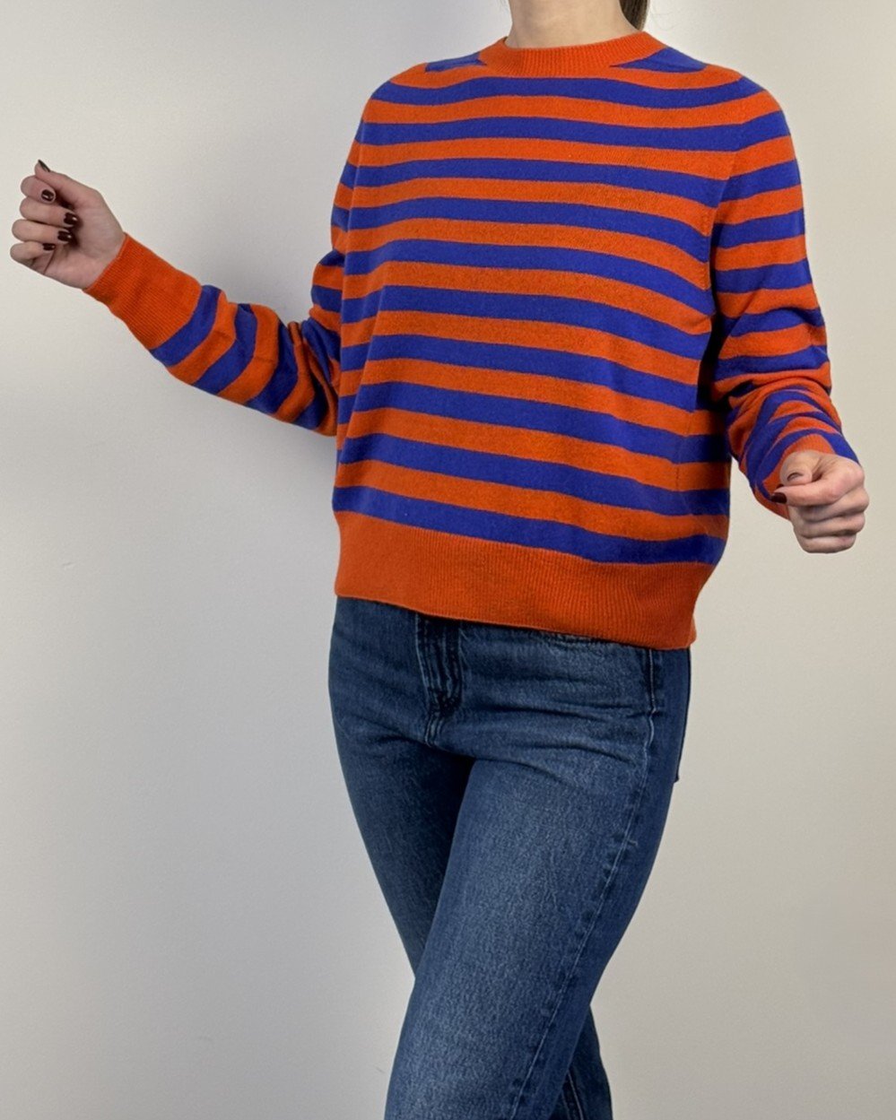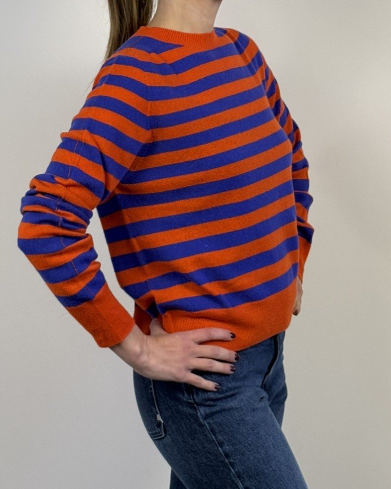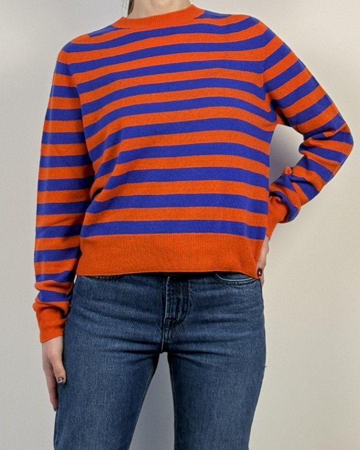Maglia girocollo a righe, vestibilità morbida e cropped.