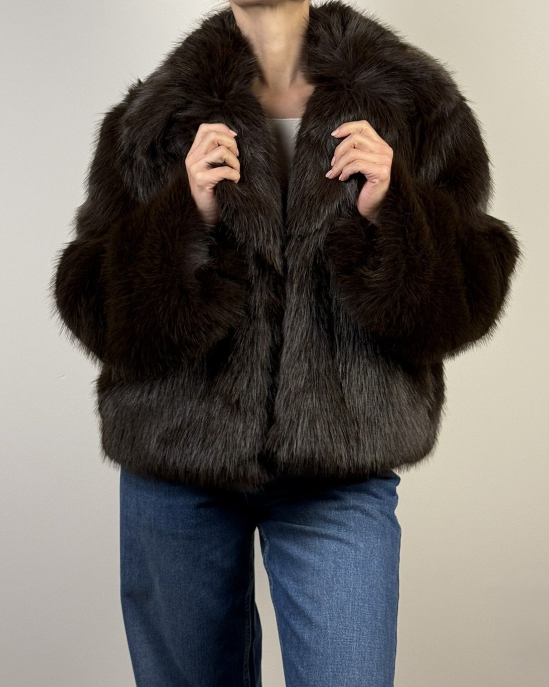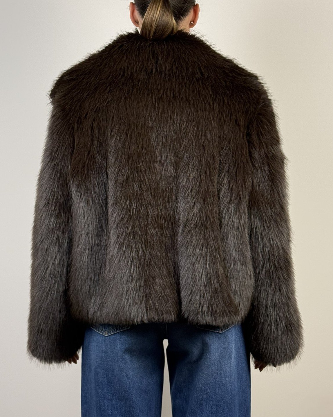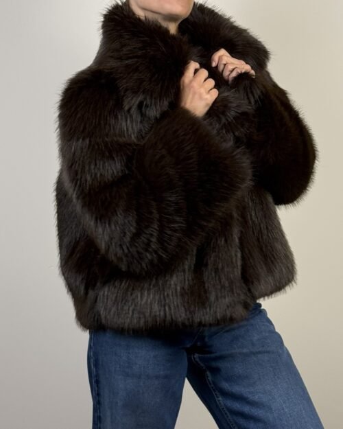 Ecopelliccia Rever Moro di Haveone. Pelliccia sintetica in ecofurr effetto pelo lungo con collo alto reverse.
