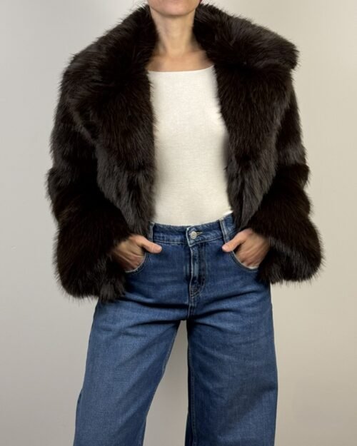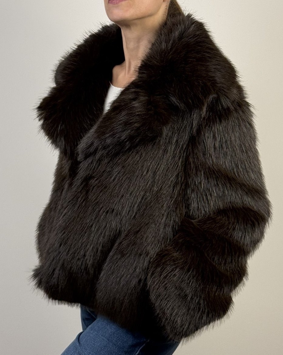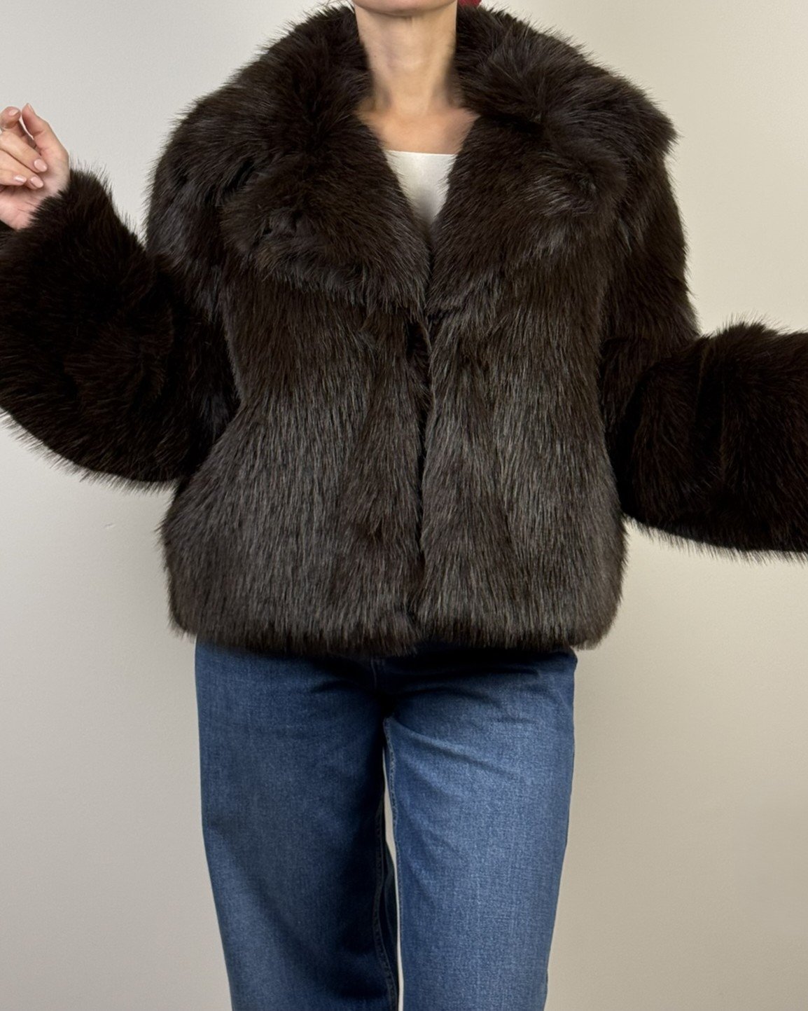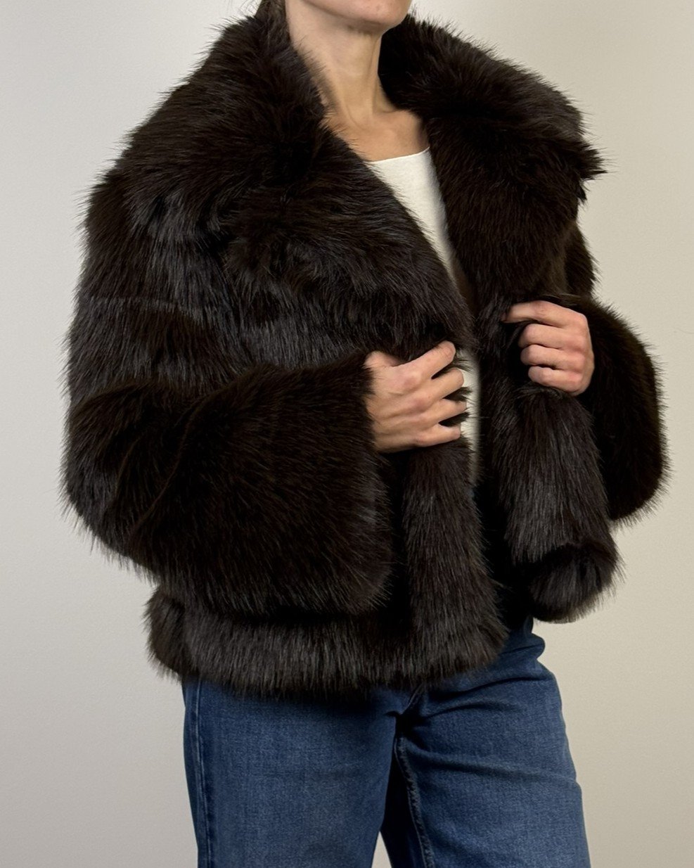 Ecopelliccia Rever Moro di Haveone. Pelliccia sintetica in ecofurr effetto pelo lungo con collo alto reverse.